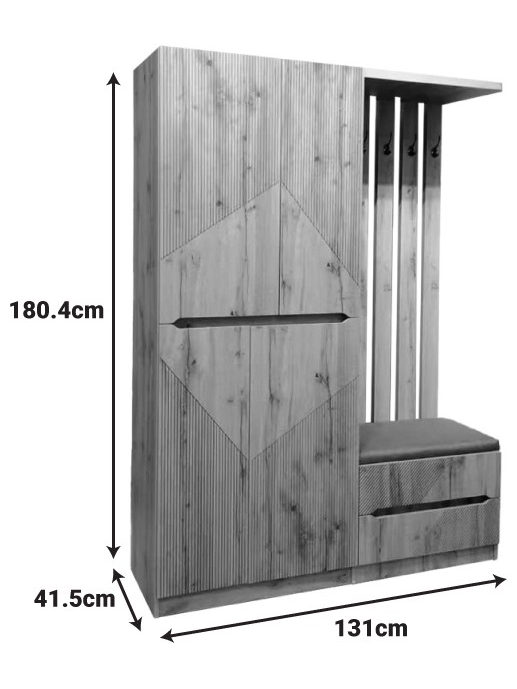 Ανανεώστε την είσοδό σας με το μοντέρνο και λειτουργικό έπιπλο εισόδου Zomie. Αυτό το κομψό σύνολο έχει σχεδιαστεί για να προσφέρει μέγιστη οργάνωση και στυλ στον χώρο υποδοχής σας. Περιλαμβάνει μια ευρύχωρη παπουτσοθήκη-ντουλάπα δύο φύλλων, καθώς και ένα πρακτικό τμήμα με κρεμάστρες για εύκολη πρόσβαση στα καθημερινά σας ρούχα και αξεσουάρ.