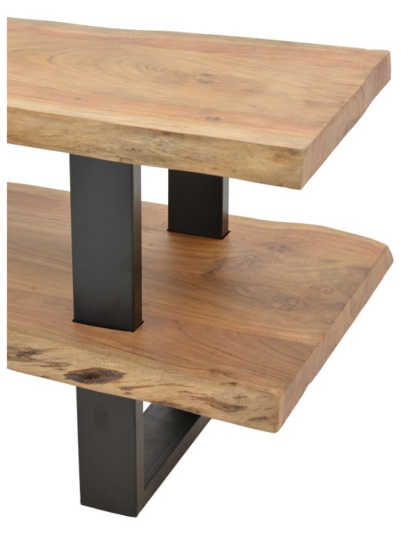 Έπιπλο Τηλεόρασης Fuji Pakoworld Μασίφ Ξύλο Ακακίας σε Φυσική Απόχρωση με Μαύρα Μεταλλικά Πόδια 140x40x52εκ