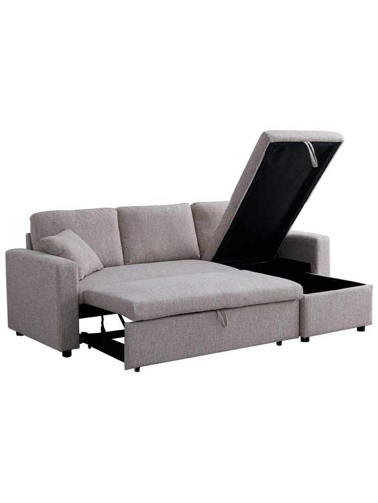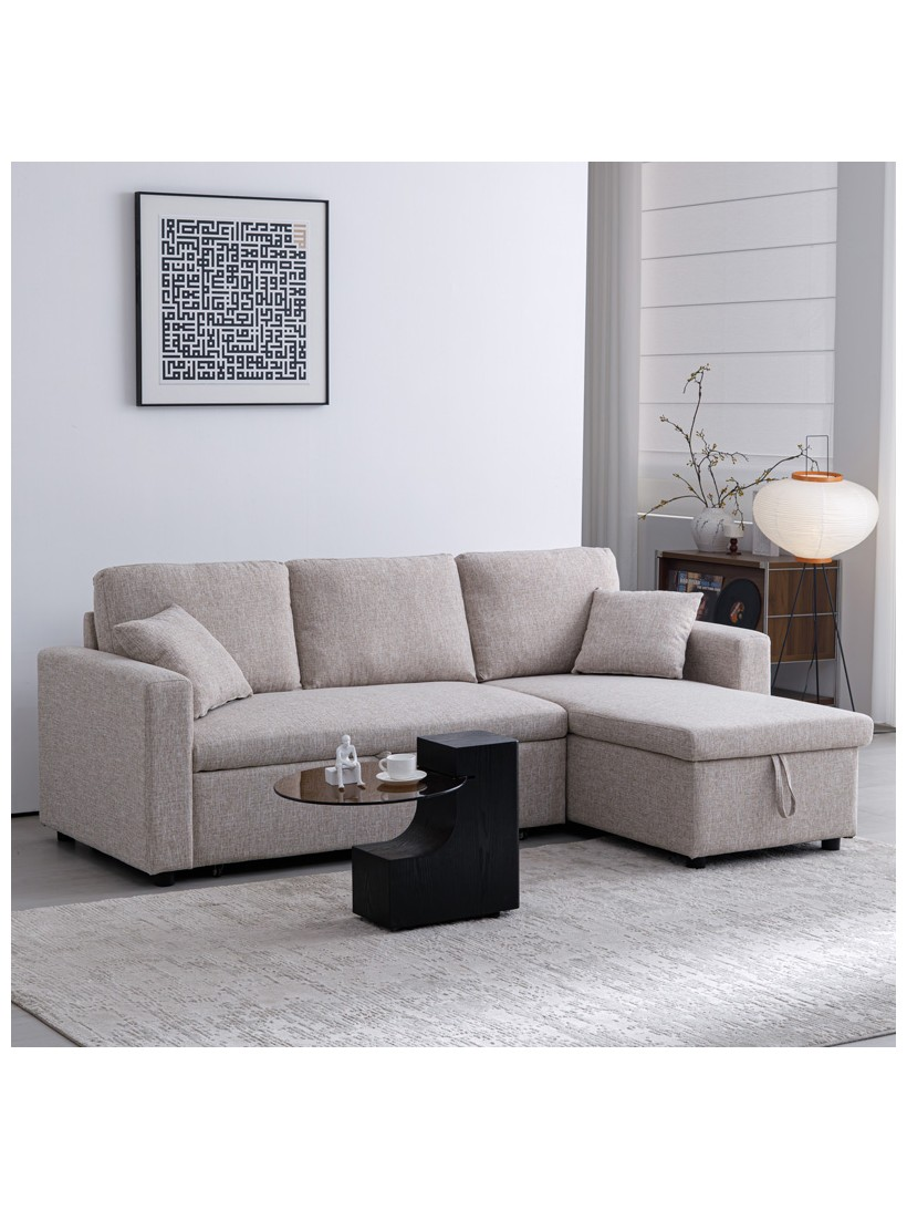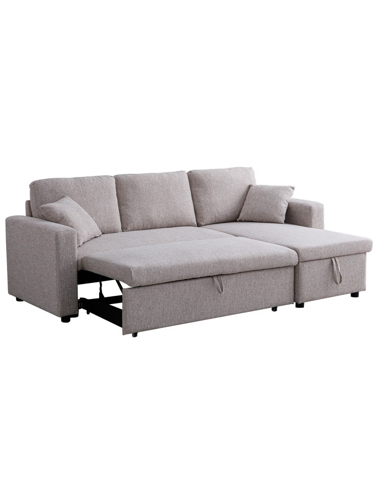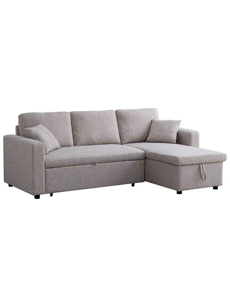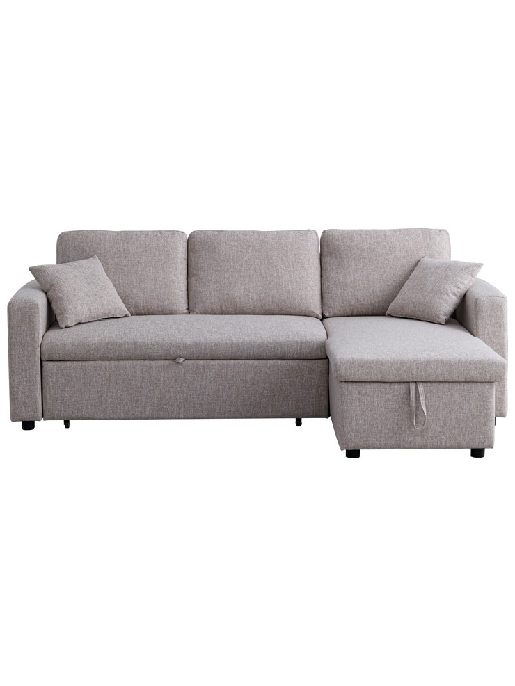 Γωνιακός Αναστρέψιμος Καναπές Κρεβάτι Kamore Pakoworld με Αποθηκευτικό Χώρο Μπεζ Ύφασμα 223x146x85εκ
