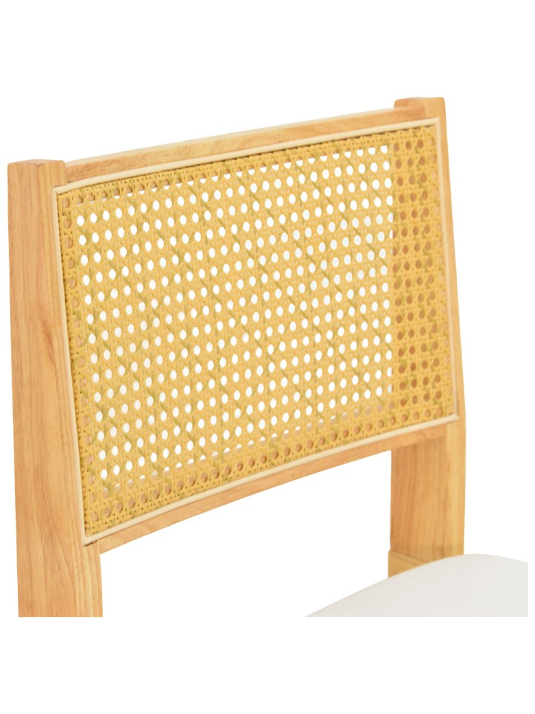 Καρέκλα Winslow κατασκευασμένη από φυσικό ξύλο rubberwood, επενδεδυμένη με ύφασμα και pvc rattan.