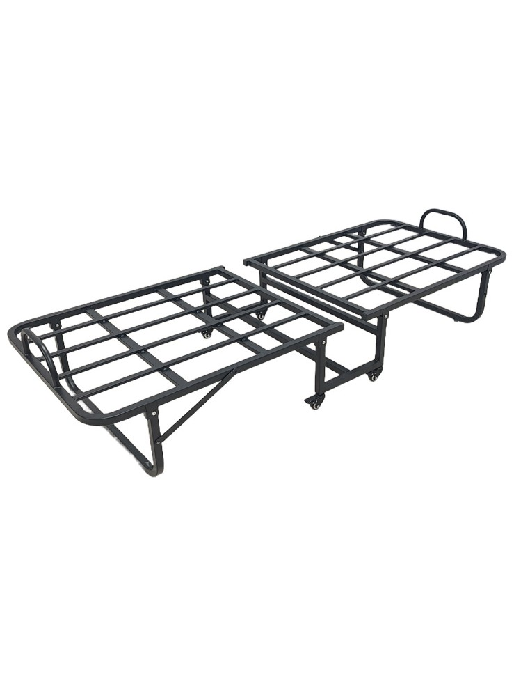 Ενα πρακτικό και ευέλικτο πτυσσόμενο κρεβάτι, ιδανικό για φιλοξενούμενους, μικρούς χώρους ή έκτακτες ανάγκες ύπνου. Ο στιβαρός μεταλλικός σκελετός σε σκούρο φινίρισμα εξασφαλίζει ανθεκτικότητα και σταθερότητα, ενώ ο έξυπνος μηχανισμός αναδίπλωσης επιτρέπει την εύκολη και γρήγορη αποθήκευση όταν δεν χρησιμοποιείται.