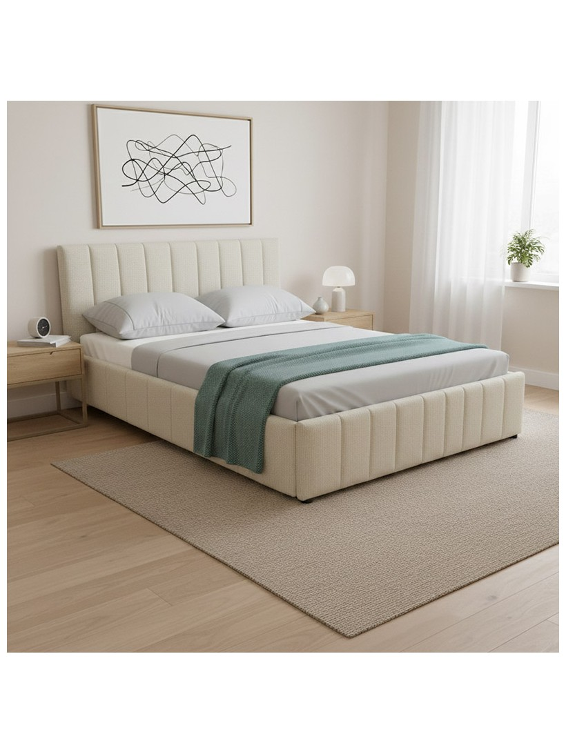 Το κρεβάτι διαθέτει έναν εύχρηστο μηχανισμό ανύψωσης του στρώματος, ο οποίος αποκαλύπτει έναν ευρύχωρο αποθηκευτικό χώρο από κάτω. Αυτό καθιστά εξαιρετικά εύκολη την τακτοποίηση κλινοσκεπασμάτων, μαξιλαριών, ρούχων εκτός εποχής ή άλλων αντικειμένων, συμβάλλοντας αποτελεσματικά στην οργάνωση και την τάξη του χώρου.