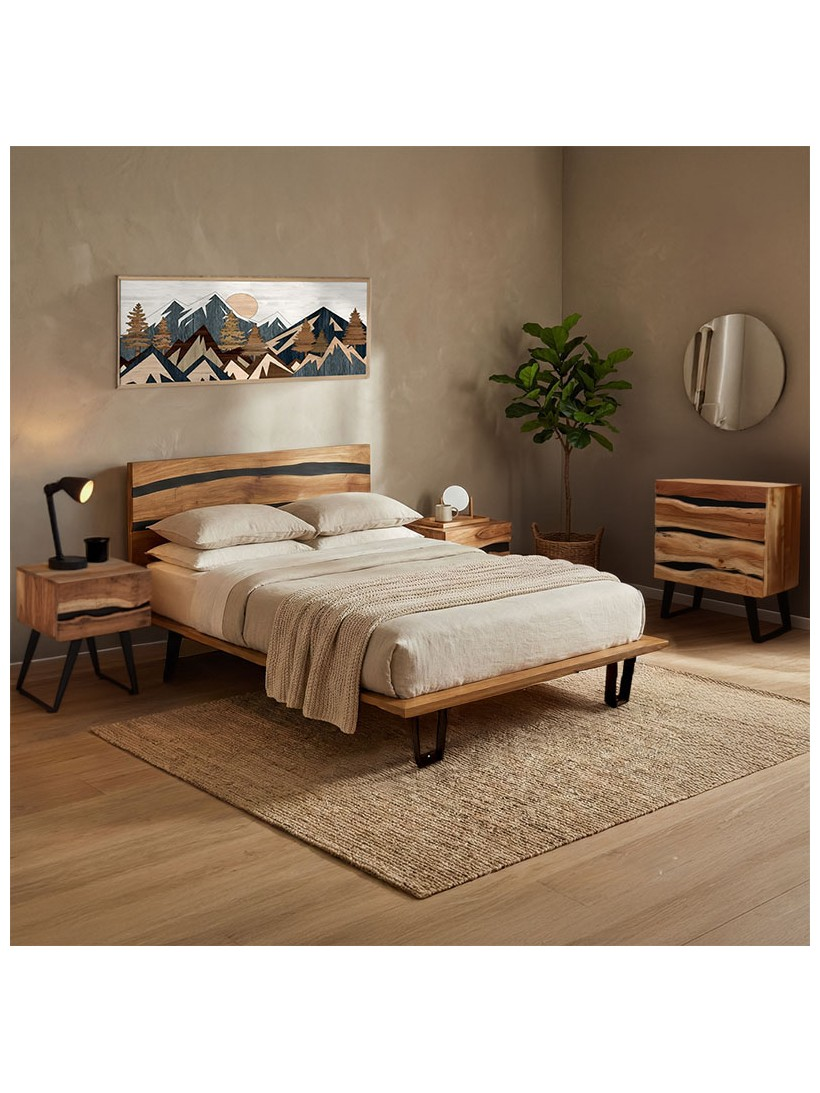 Το σετ κρεβατοκάμαρας Imena συνδυάζει αριστοτεχνικά την ακατέργαστη ομορφιά του φυσικού ξύλου με μια μοντέρνα, βιομηχανική πινελιά. Το ξεχωριστό χαρακτηριστικό του είναι η εντυπωσιακή "ρωγμή" , που δημιουργεί ένα μοναδικό οπτικό ενδιαφέρον αλλά και αναδεικνύοντας την οργανική του φύση.
