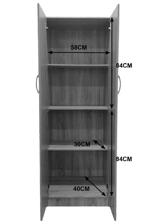 - Περιλαμβάνει δύο πόρτες, εσωτερικά φέρει τέσσερα ράφια για την οργάνωση των ρούχων και αξεσουάρ.