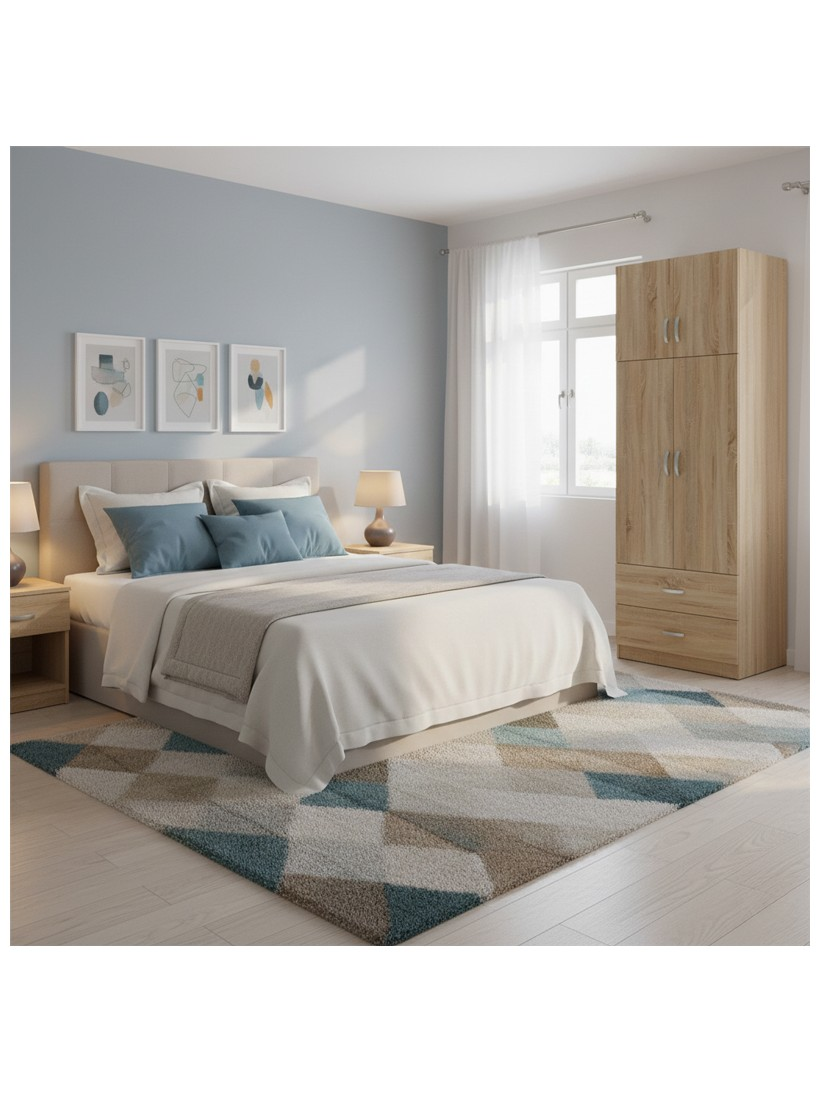 - Περιλαμβάνει δύο πόρτες, εσωτερικά φέρει ράγα για κρεμάστρες ενώ κάτω φέρει δύο μεγάλα συρτάρια για την αποθήκευση ρούχων και αξεσουάρ.