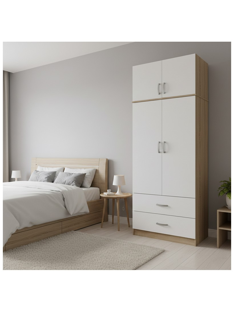 - Περιλαμβάνει δύο πόρτες, εσωτερικά φέρει ράγα για κρεμάστρες ενώ κάτω φέρει δύο μεγάλα συρτάρια για την αποθήκευση ρούχων και αξεσουάρ.