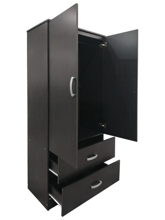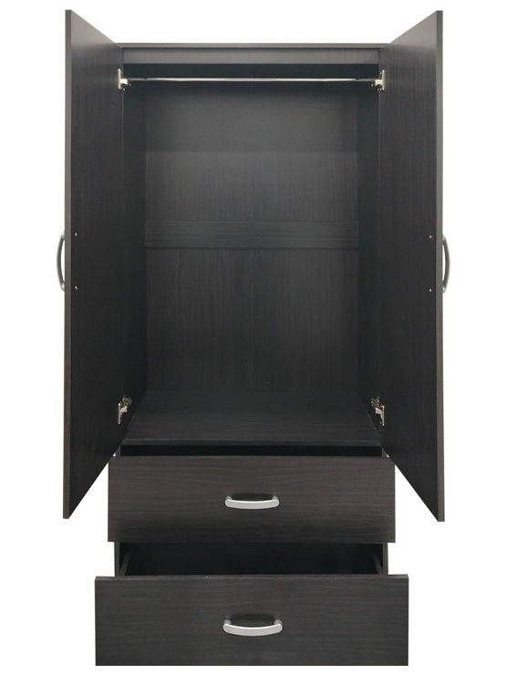 - Περιλαμβάνει δύο πόρτες, εσωτερικά φέρει ράγα για κρεμάστρες ενώ κάτω φέρει δύο μεγάλα συρτάρια για την αποθήκευση ρούχων και αξεσουάρ.