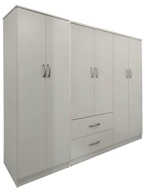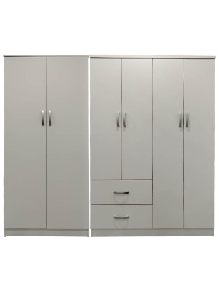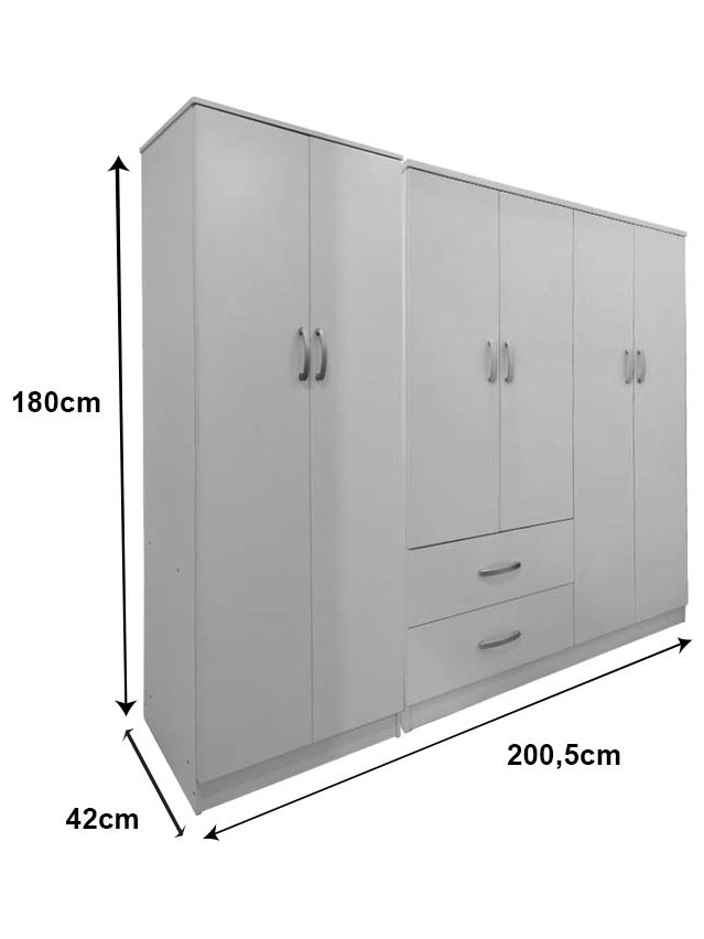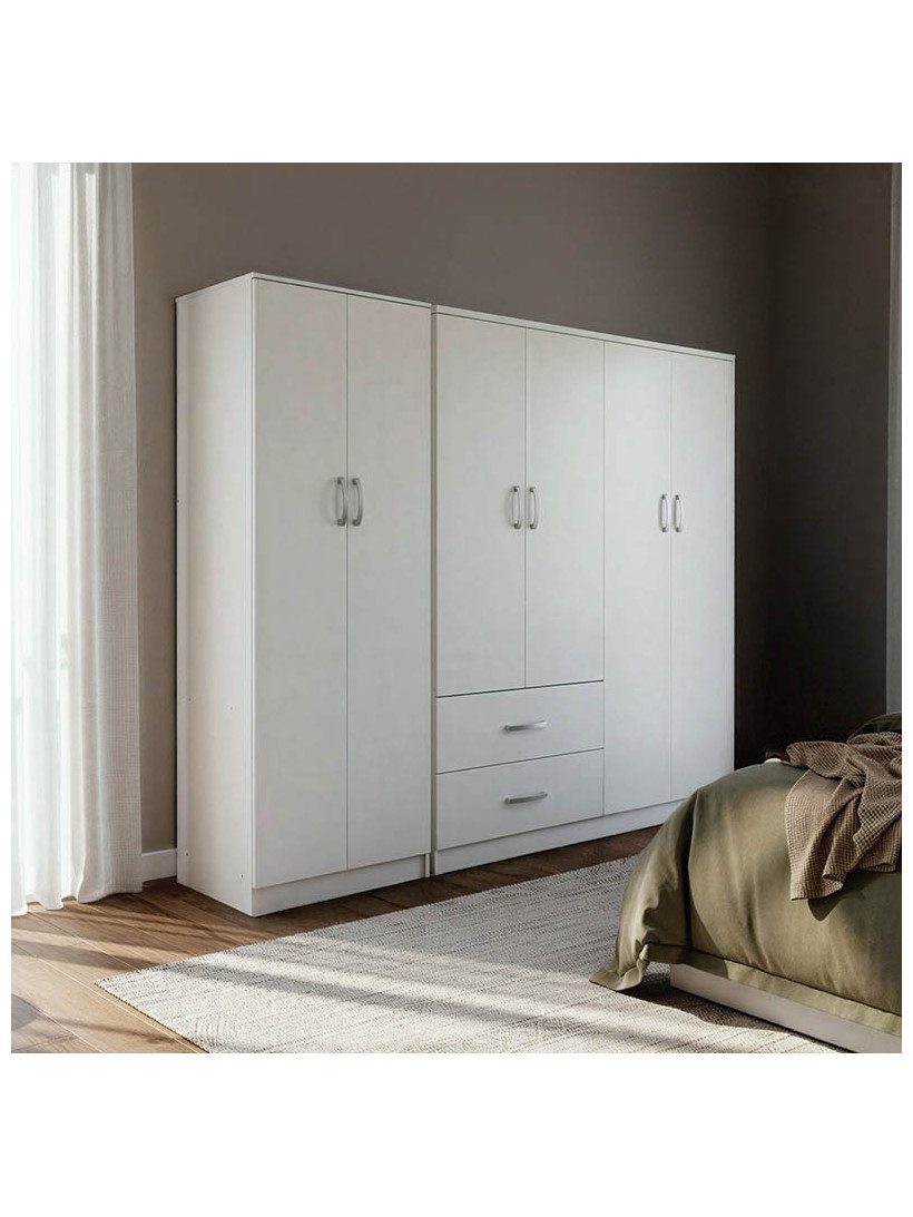 - Περιλαμβάνει έξι πόρτες, εσωτερικά φέρει ράγα για κρεμάστρες και ράφια ενώ κάτω φέρει δυο μεγάλα συρτάρια για την αποθήκευση ρούχων και αξεσουάρ.