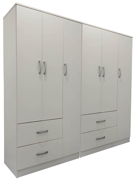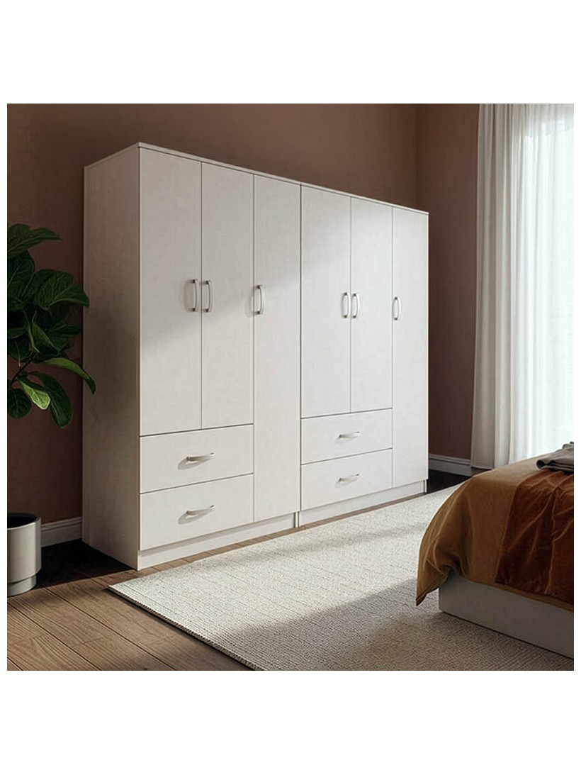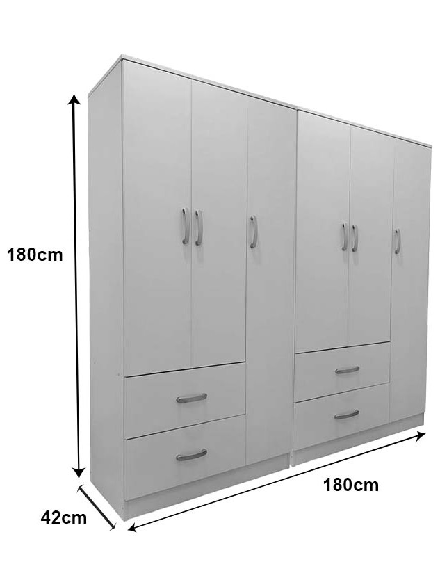 - Περιλαμβάνει έξι πόρτες, εσωτερικά φέρει ράγα για κρεμάστρες και ράφια ενώ κάτω φέρει τέσσερα μεγάλα συρτάρια για την αποθήκευση ρούχων και αξεσουάρ.