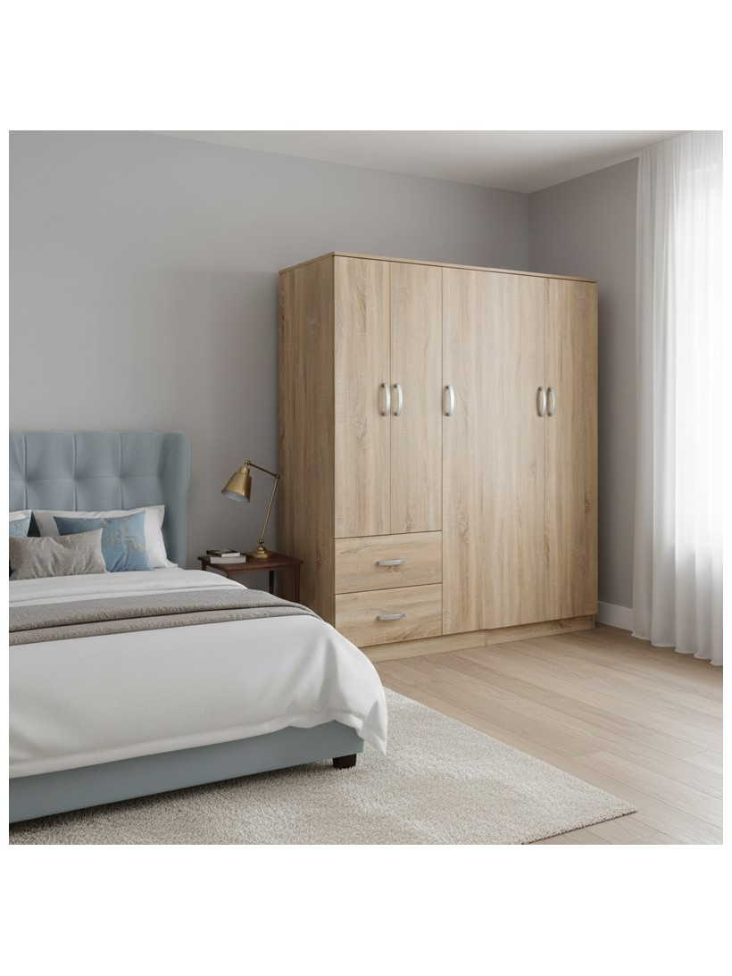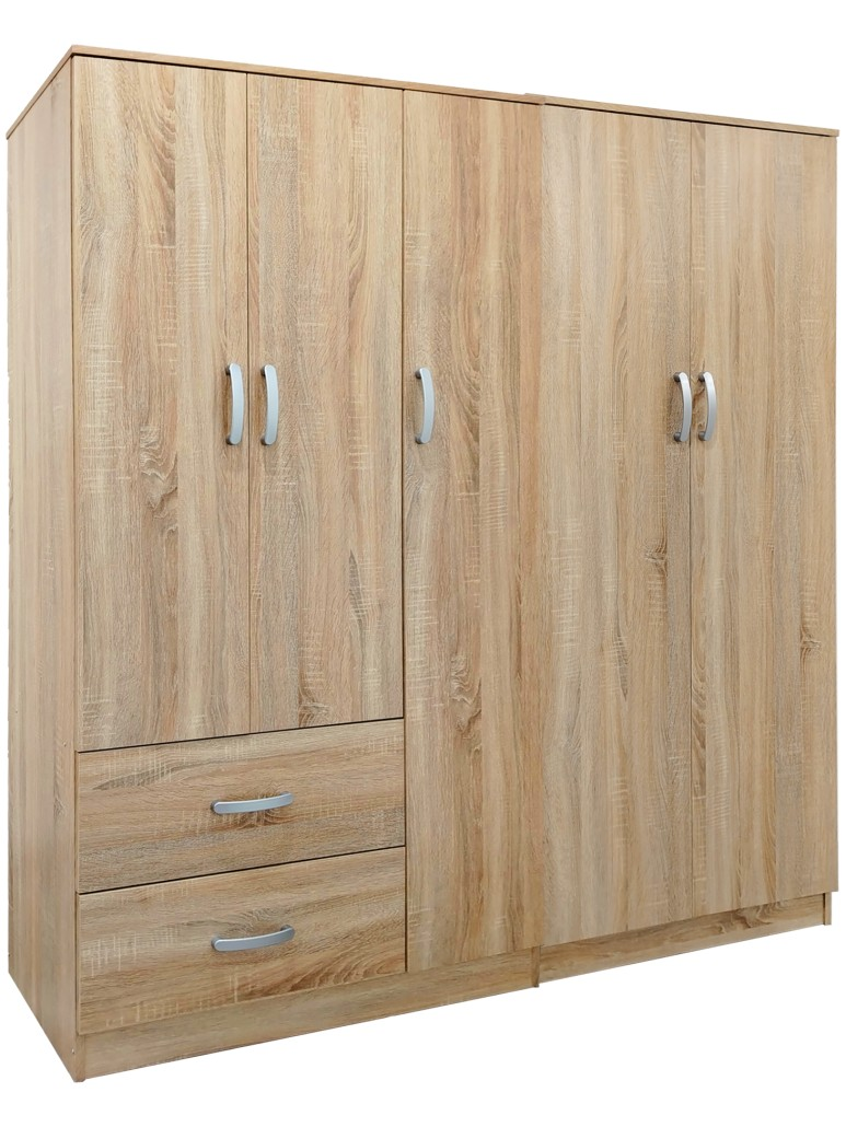 - Περιλαμβάνει πέντε πόρτες, εσωτερικά φέρει ράγα για κρεμάστρες και ράφια ενώ κάτω φέρει δυο μεγάλα συρτάρια για την αποθήκευση ρούχων και αξεσουάρ.