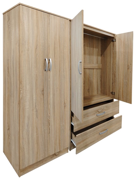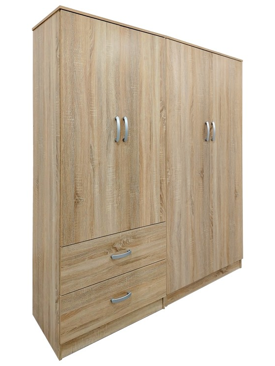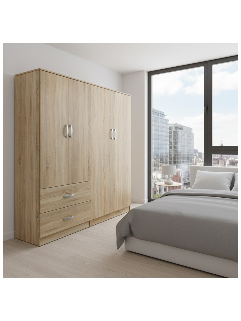 • Περιλαμβάνει τέσσερις πόρτες, εσωτερικά φέρει ράγα για κρεμάστρες ενώ κάτω φέρει δύο μεγάλα συρτάρια για την αποθήκευση ρούχων και αξεσουάρ.
