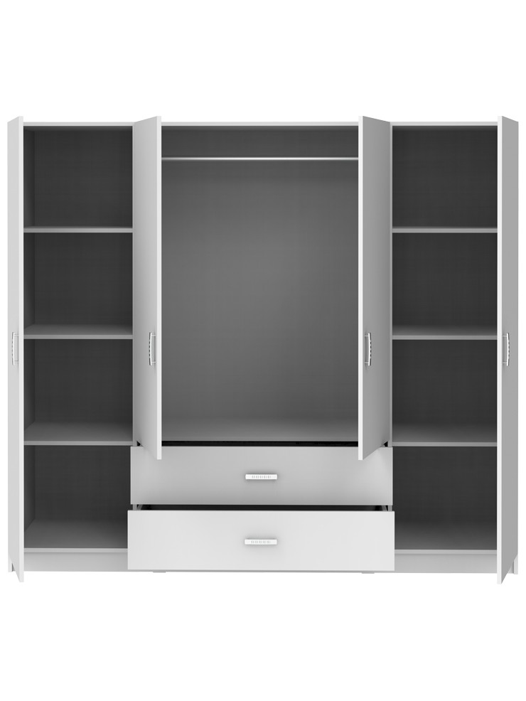 - Στο εσωτερικό περιλαμβάνει μεταλλική βέργα για κρεμάστρες και πολλαπλά ράφια.