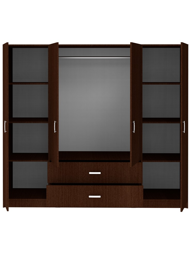 - Στο εσωτερικό περιλαμβάνει μεταλλική βέργα για κρεμάστρες και πολλαπλά ράφια.