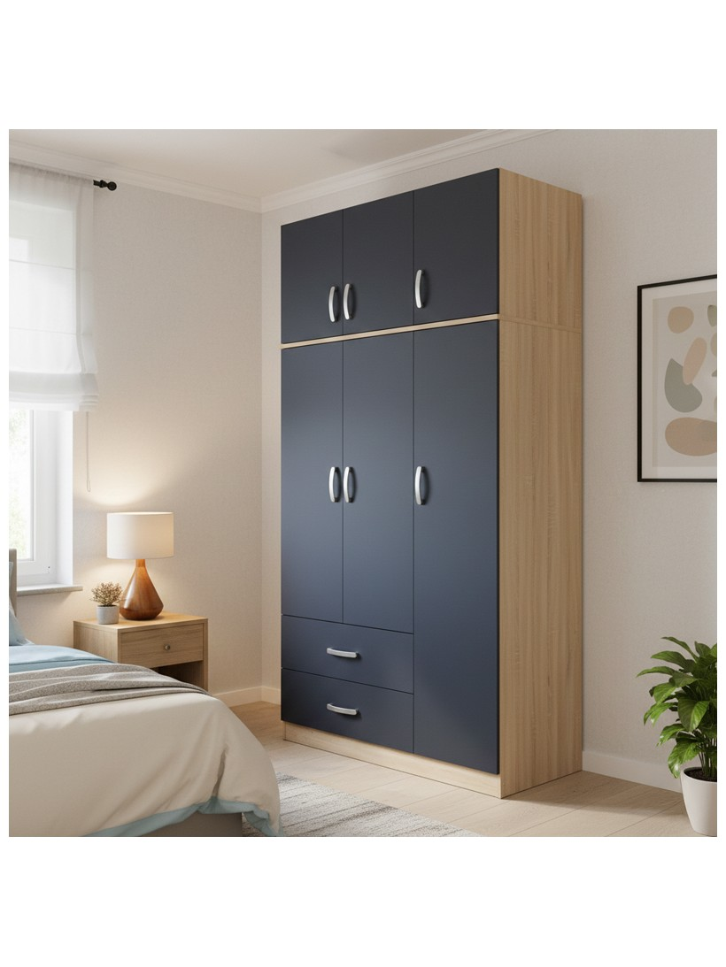 - Περιλαμβάνει τρεις πόρτες, εσωτερικά φέρει ράγα για κρεμάστρες και ράφια ενώ κάτω φέρει δύο μεγάλα συρτάρια για την αποθήκευση ρούχων και αξεσουάρ.