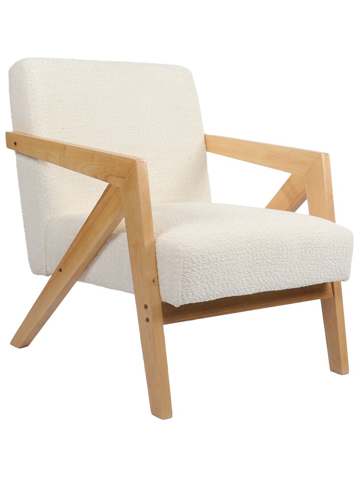 Πολυθρόνα Garifa Pakoworld Λευκό Ύφασμα με Πόδι σε Φυσική Απόχρωση 79x75x75εκ
