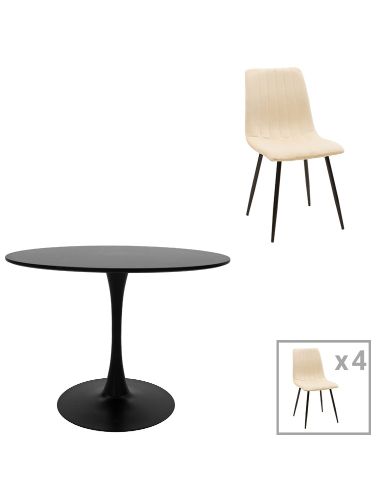 Τραπεζαρία Balou-Noor Pakoworld σετ 5τεμ mdf Μαύρο-Μπεζ Φ100x73εκ