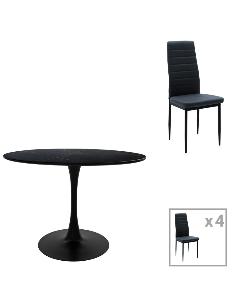 Τραπεζαρία Balou-Parker Pakoworld σετ 5τεμ Μαύρο-Ανθρακί Φ120x73εκ