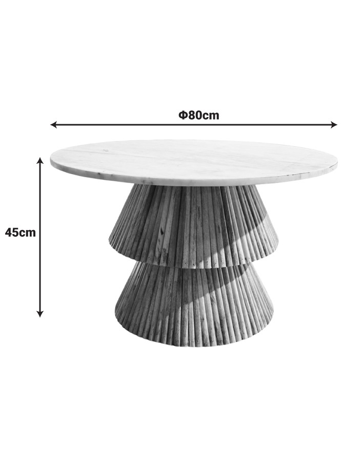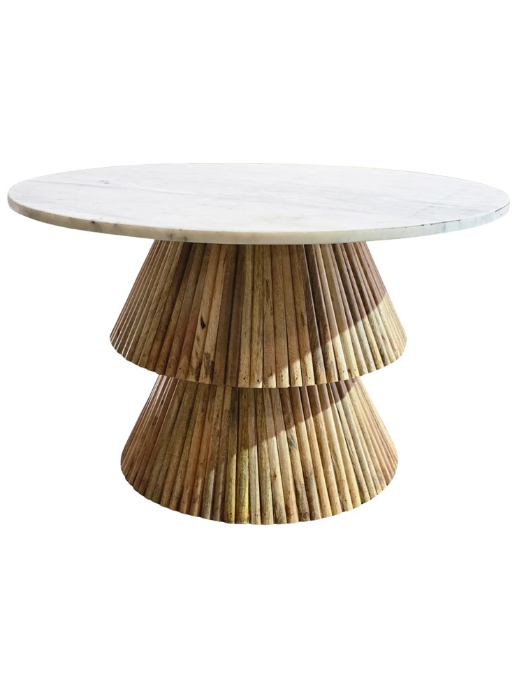 Τραπέζι Σαλονιού Havai Pakoworld Μασίφ Ξύλο Mango σε Φυσική Απόχρωση κ Λευκή Επιφάνεια Μαρμάρου Φ80x45εκ