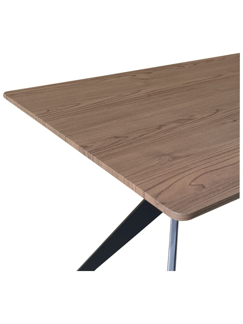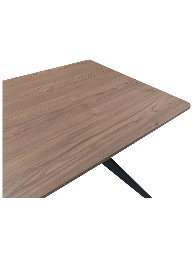 Δώστε στον χώρο σας έναν αέρα μοντέρνας κομψότητας με αυτό το εντυπωσιακό ορθογώνιο τραπέζι Ezali. Η επιφάνεια με την όψη ξύλου προσδίδει ζεστασιά και φυσικότητα, ενώ η τολμηρή, μαύρη μεταλλική βάση με τα διασταυρούμενα πόδια και την κεντρική ενίσχυση, αποτελεί ένα ξεχωριστό αρχιτεκτονικό στοιχείο που μαγνητίζει τα βλέμματα.