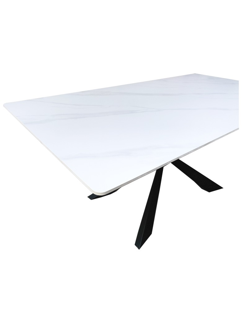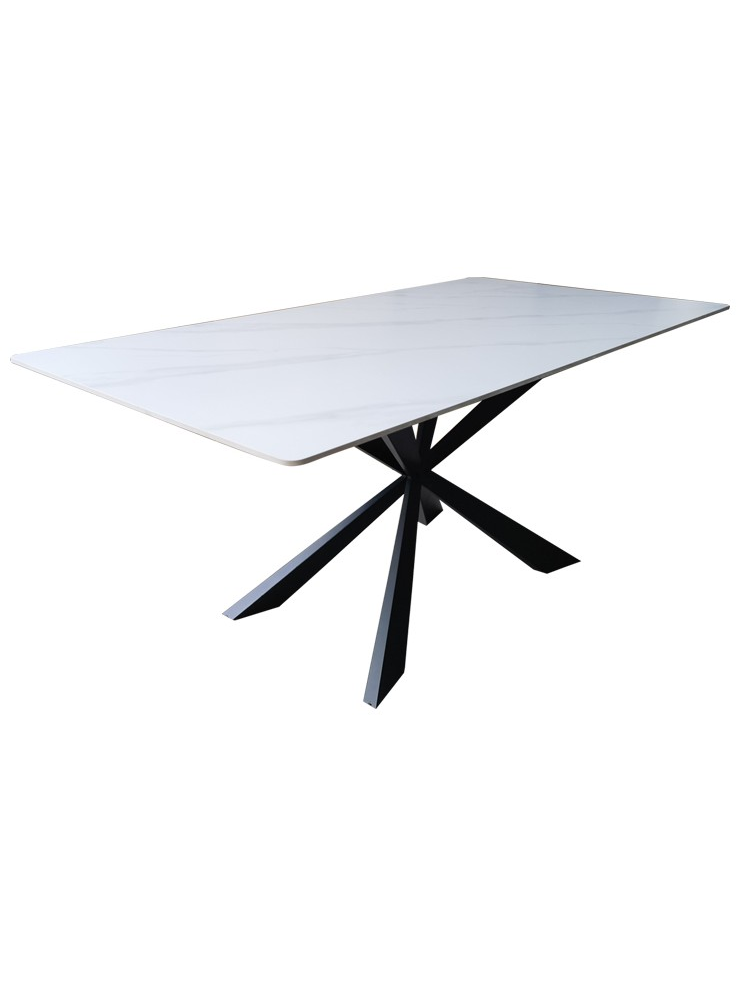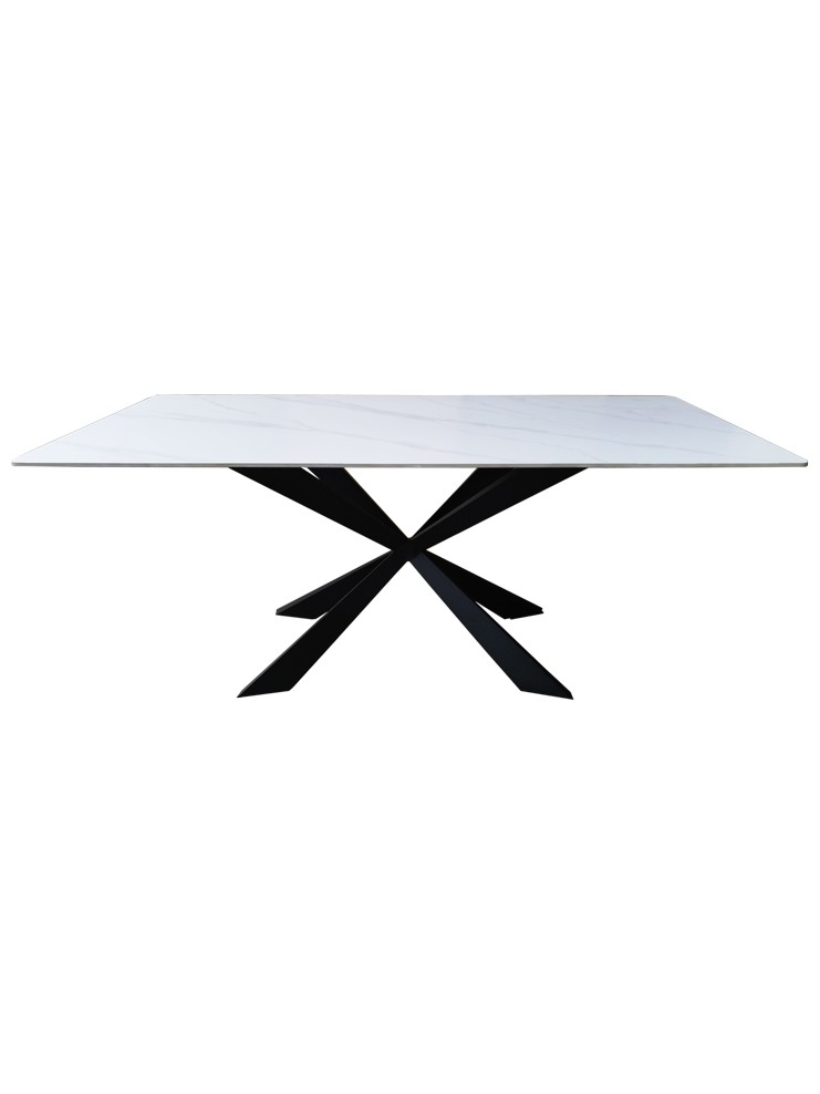 Αναζητάτε ένα statement έπιπλο που θα αναδείξει την τραπεζαρία ή τον επαγγελματικό σας χώρο; Αυτό το ορθογώνιο τραπέζι συνδυάζει άψογα τη φυσική ομορφιά της επιφάνειας με όψη μαρμάρου και τον τολμηρό, σύγχρονο σχεδιασμό της μαύρης μεταλλικής βάσης. Η μοναδική διασταυρούμενη βάση όχι μόνο προσφέρει εξαιρετική σταθερότητα, αλλά αποτελεί και ένα εντυπωσιακό αρχιτεκτονικό στοιχείο.