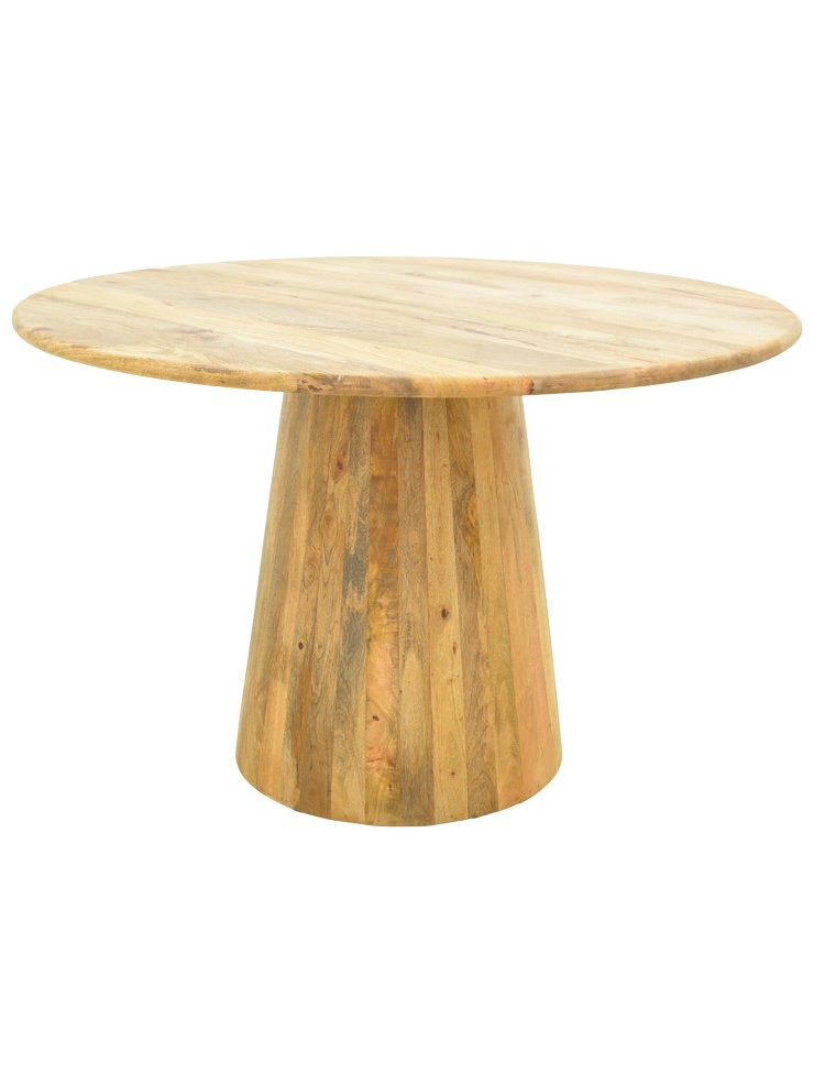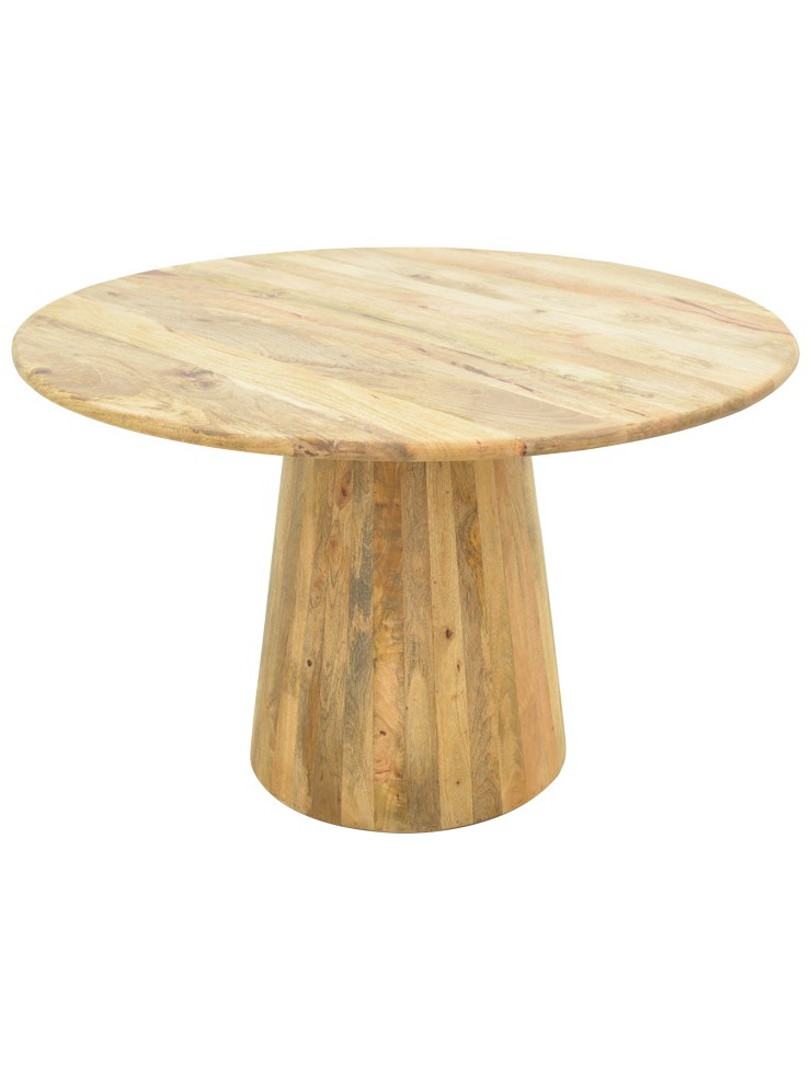 To κομψό στρόγγυλο τραπέζι Rahma θα μεταμορφώσει την τραπεζαρία σας σε έναν χώρο ζεστασιάς και φιλοξενίας. Κατασκευασμένο εξ ολοκλήρου από mango ξύλο υψηλής ποιότητας, το τραπέζι αυτό συνδυάζει την αντοχή με την αισθητική.