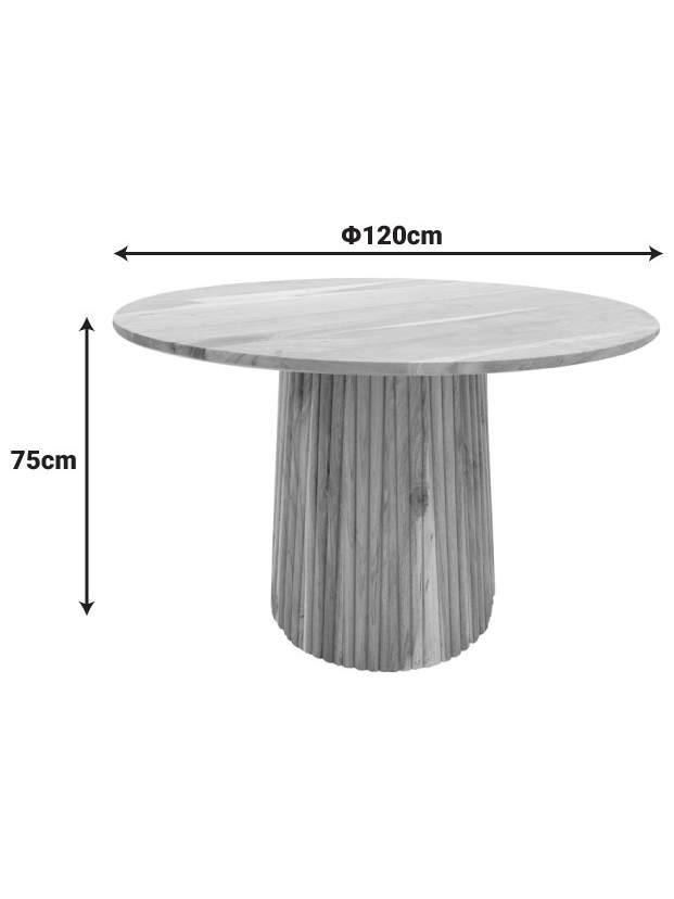 Το κομψό στρογγυλό τραπέζι φαγητού Tully, προσφέρει μια ζεστή και φιλόξενη ατμόσφαιρα σε κάθε χώρο. Κατασκευασμένο από υψηλής ποιότητας ξύλο ακακίας, είναι ιδανικό για να προσθέσει μια πινελιά φυσικής ομορφιάς και διαχρονικής κομψότητας στην τραπεζαρία, την κουζίνα ή ακόμα και σε έναν επαγγελματικό χώρο.