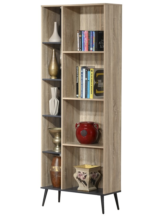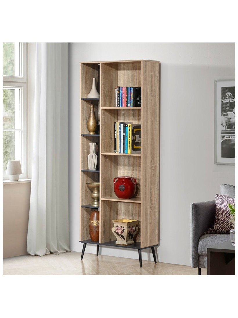 - Διαθέτει πέντε ράφια από την μία πλευρά και τέσσερα από την άλλη πλευρά για ανοιχτή αποθήκευση των βιβλίων ή άλλων αντικειμένων σας.