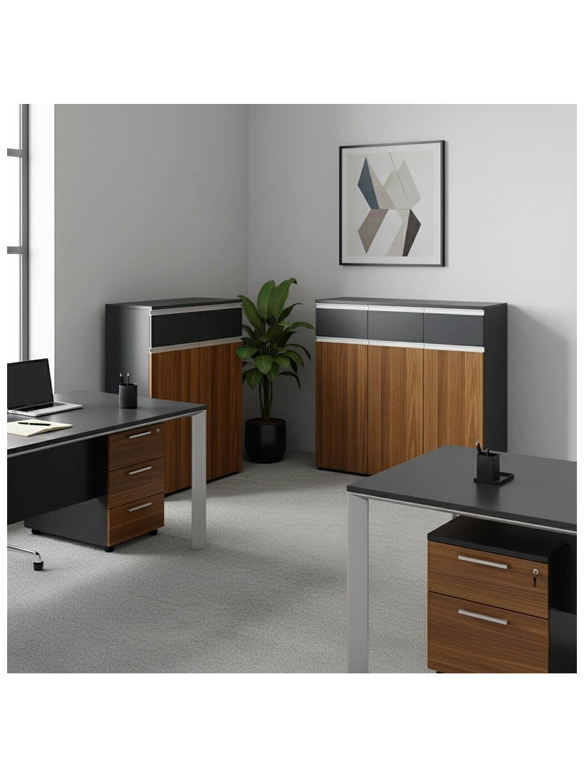 Τα ντουλάπια γραφείου Oscar συνδυάζουν αρμονικά την κομψότητα με την εργονομία, προσφέροντας έναν ιδανικό αποθηκευτικό χώρο για κάθε σύγχρονο επαγγελματικό περιβάλλον. Με minimal γραμμές και διχρωμία ξύλου-ανθρακί, προσδίδει υψηλή αισθητική και επαγγελματικό χαρακτήρα στο χώρο.
