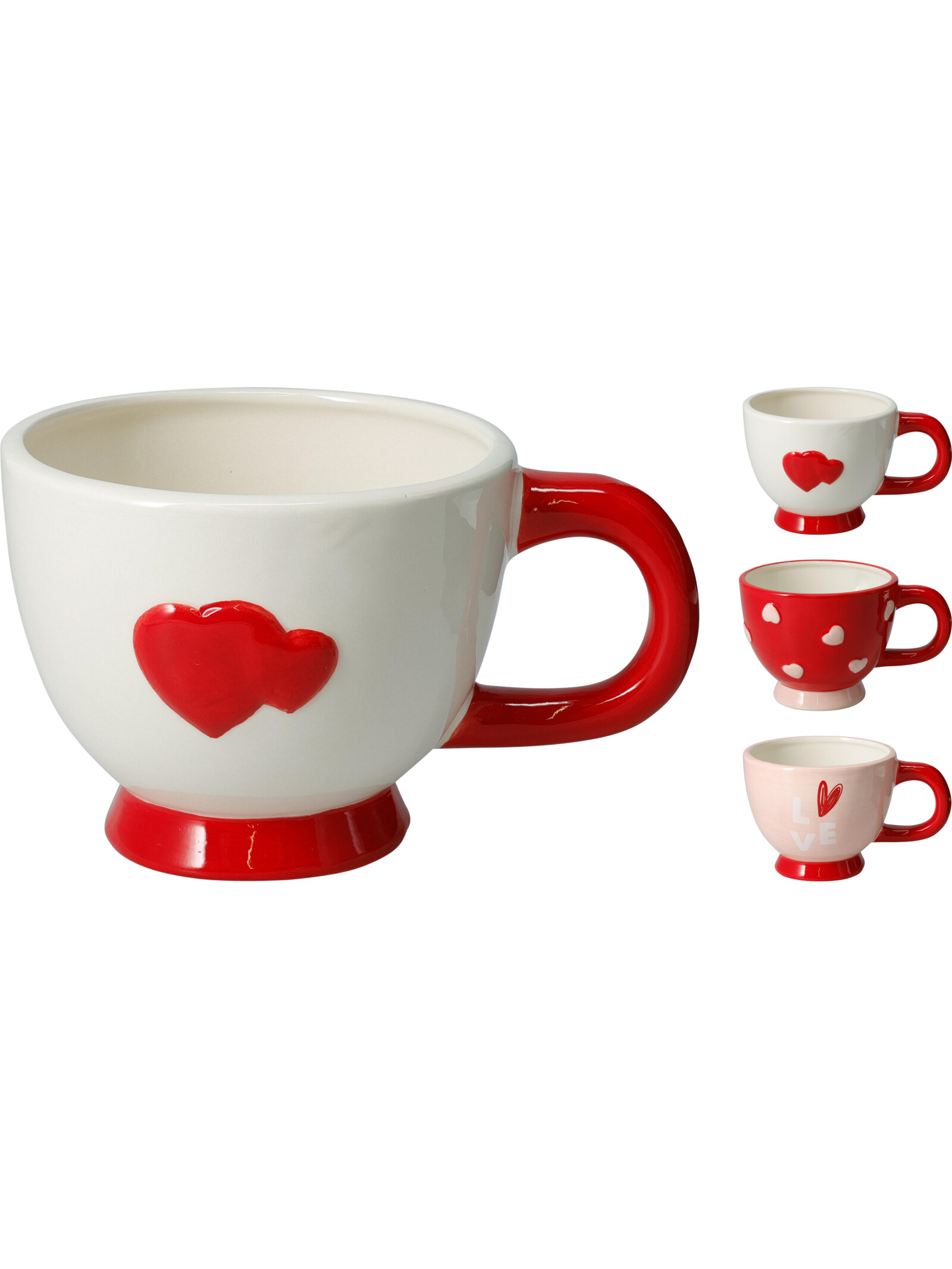 Κεραμική κούπα με σχέδιο καρδιά και βάση σε 3 χρώματα 500ml