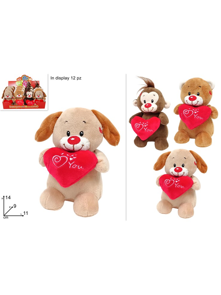 Λούτρινο ζωάκι Άγιος Βαλεντίνος 14cm αγκαλιά με κόκκινη καρδιά