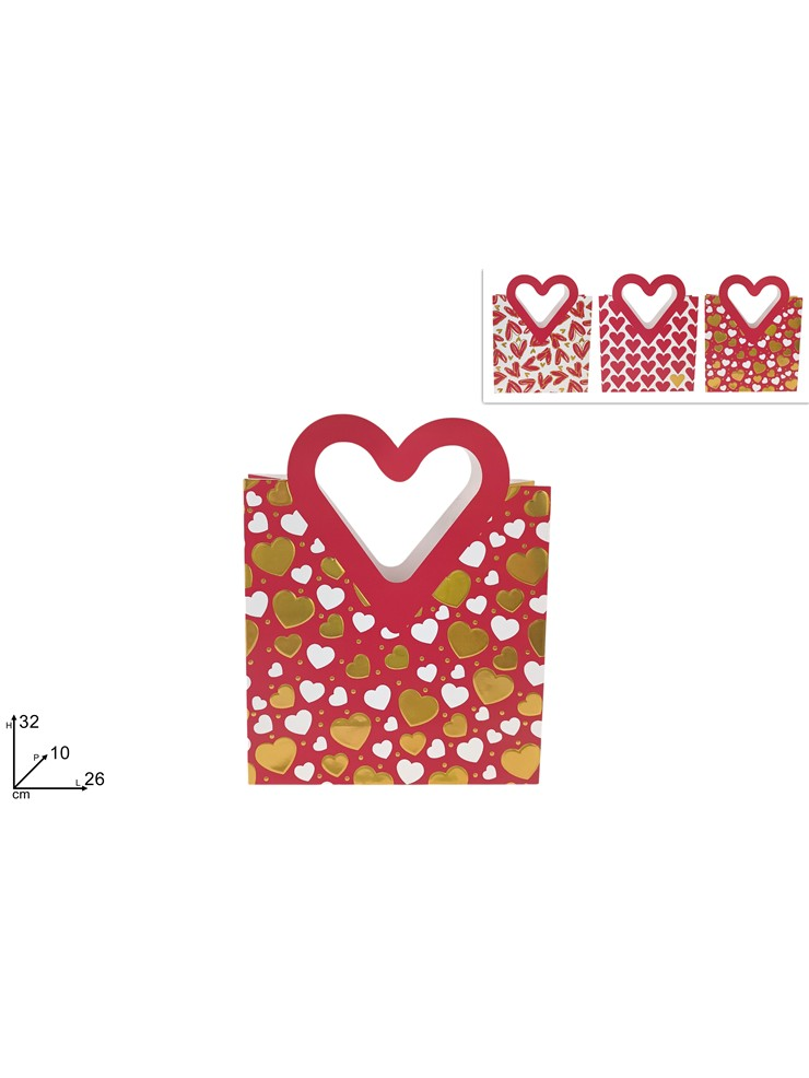 Σακούλα δώρου Άγιος Βαλεντίνος με χερούλια καρδιάς 3 σχέδια 26x32x10cm