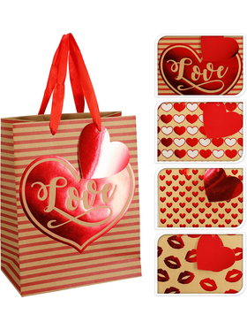 Σακούλα δώρου Άγιος Βαλεντίνος σε μπεζ χρώμα με τυπωμένη καρδιά 23x18x10cm