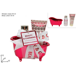 Χριστουγεννιάτικο σετ δώρου με κρεμοντούς και κρέμα σώματος σε κόκκινη μπανιέρα με άρωμα Μηλόπιτα και Γιασεμί 12x6x10cm
