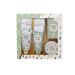 Χριστουγεννιάτικο σετ δώρου λευκό/πράσινο με αφρόλουτρο, κρέμα σώματος, body scrub, άλατα μπάνιου και πετσέτα