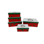 Χρυστουγεννιάτικη μπισκοτιέρα ορθογώνια σε σχήμα δώρου με διαστάσεις 13x19cm σε κόκκινο με λευκό χρώμα
