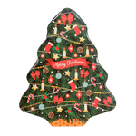 Χριστουγεννιάτικο μεταλλικό κουτί σε σχήμα στολισμένο έλατο με σοκολατάκια 18x5x13cm