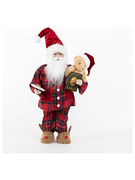 Αγιος Βασιλης με Αρκουδο, Κοκκινος Καρο, 23x46cm