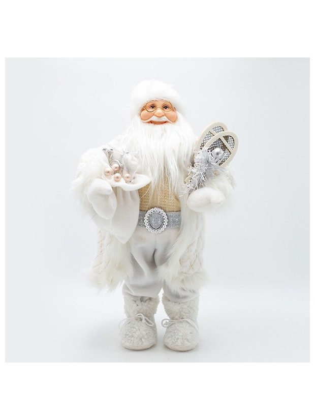 Αη Βασιλης με Λευκη Γουνα και Δωρακια, 45cm
