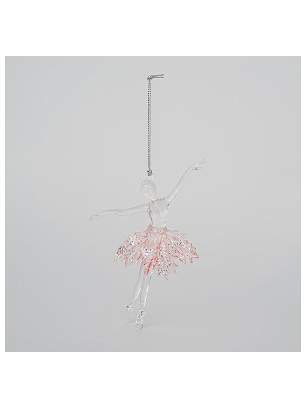 Ακρυλικη Μπαλαρινα, Διαφανη, με ροζ Φουστα, 9,5x15cm