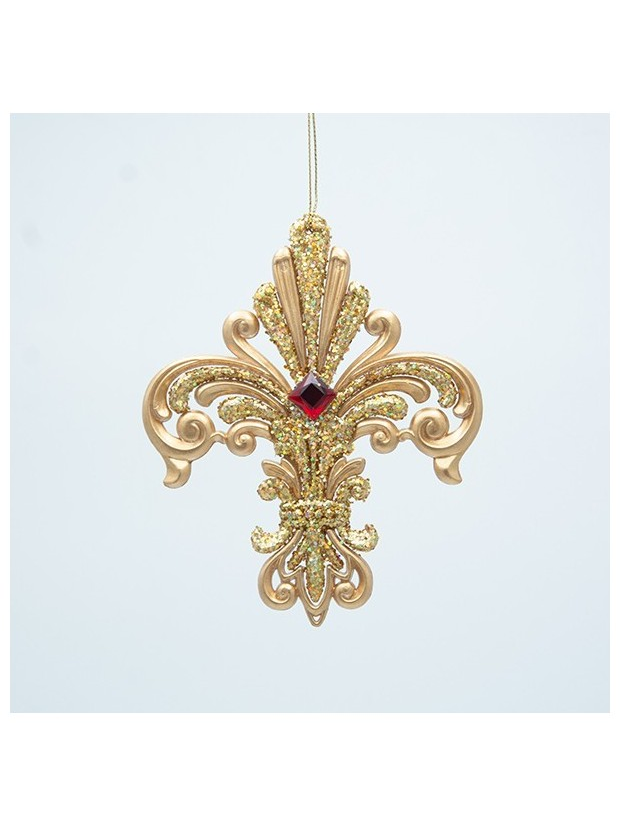 Ακρυλικο Στολιδι Fleur de Lis, Χρυσο με Κοκκινο Λιθο, 11.4x1x13.7cm