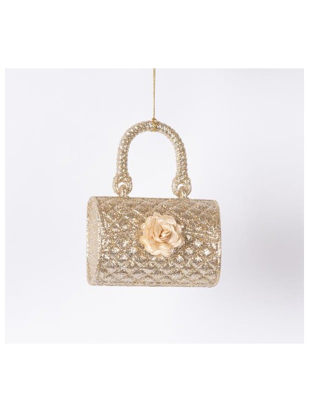 Ακρυλικο Στολιδι, Τσαντα, Σαμπανι με Γκλιτερ, 11,5cm