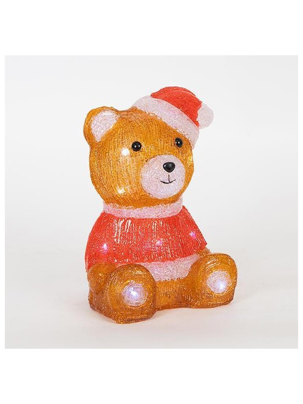 Ακρυλικος Αρκουδος Καφε & Κοκκινο, Μπαταριας 2xaa, 20 Λευκα + 5 Λευκα Flash Led, 16x14x24cm, Ip20