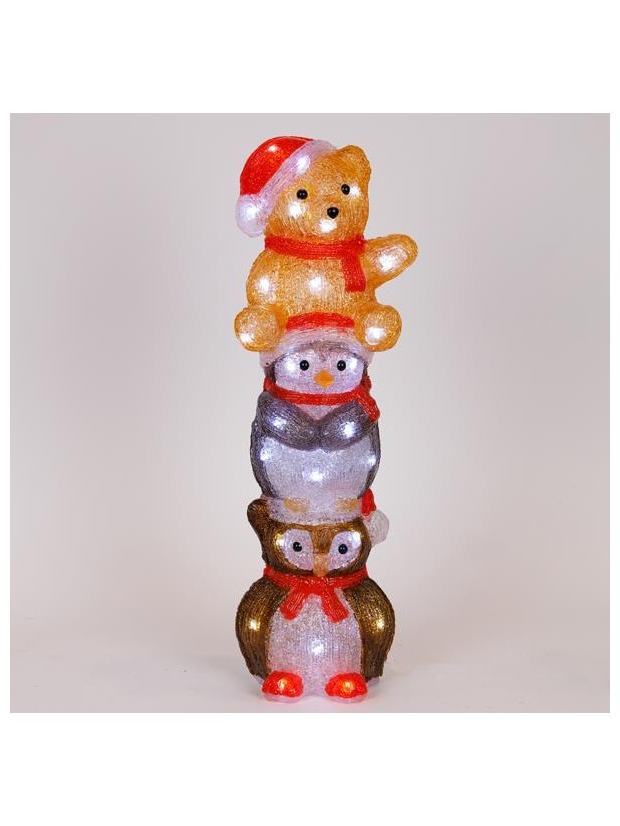 Ακρυλικος Αρκουδος, Πινγκουινος, Κουκουβαγια, 3,5v Μετασχηματιστη, 40 Λευκα Mini Led, 16x14x49cm, Προεκταση Παροχης 5m, Ip44