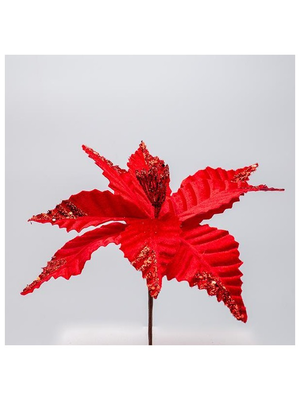 Αλεξανδρινο, Κοκκινο με Λεπτομερεια Glitter στα Φυλλα, 24x15cm
