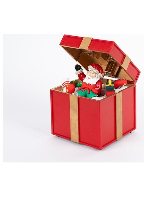 Ανοιγομενο Δωρο με Αγιο Βασιλη, με φωσ και Κινηση, Μπαταριας, 12.5x12.5x20cm