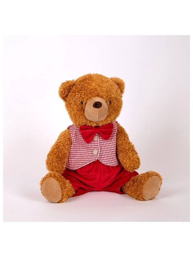 Αρκουδακι με ροζ Καρο Γιλεκο, Καθιστο, 29cm