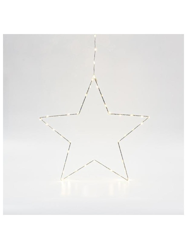 Ασημι Αστερι Φωτιζομεν0 40cm, 40 Mini led στο Αστερι και 15 Mini led στο Καλωδιο, Σταθερος Μετασχηματιστης, Ασημι Χαλκινο Καλωδιο, Θερμο Λευκο Led, Προεκταση Παροχης 3m, Ip44