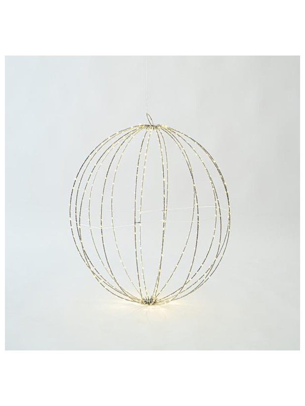 Ασημι Μεταλλικη Μπαλα Φωτιζομενη 60cm, 480 Mini Led, Σταθερος Μετασχηματιστης, Ασημι Χαλκινο Καλωδιο, Θερμο Λευκο Led, Προεκταση Παροχης 3m, Ip44