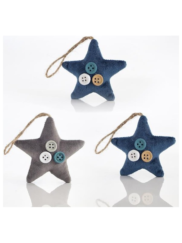 Αστερια Βελουδινα, με Κουμπακια, σε 3 Χρωματα, σετ 6τμχ, 6,5x6,5x2cm