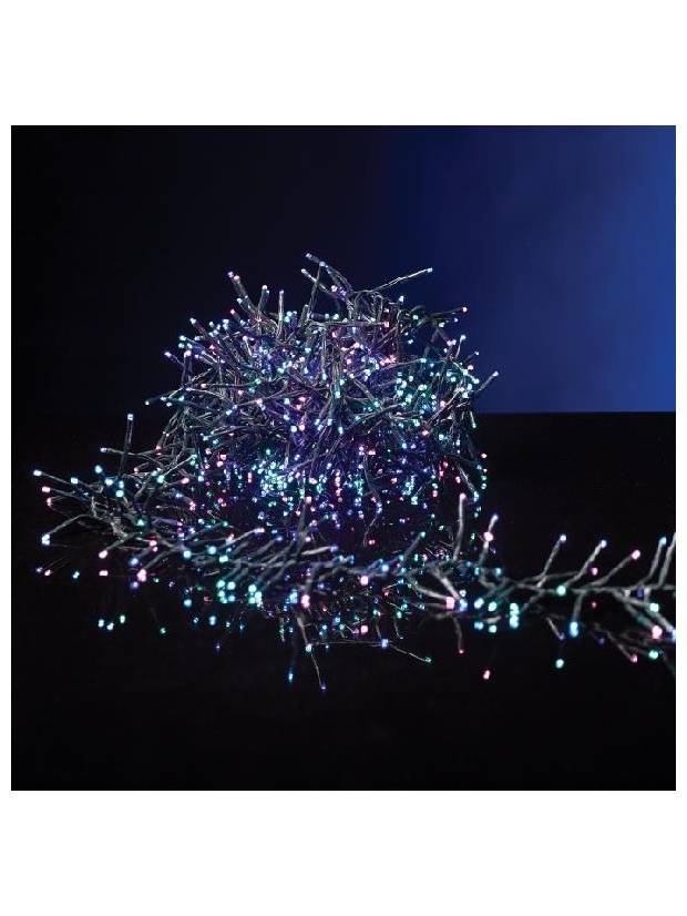 Cluster 6m, 768 led 3mm, 31v Μετασχηματιστη, 8 Προγραμματα & Μνημη, Πρασινο pvc Καλωδιο, Oπαλ Πολυχρωμο Led, Προεκταση Παροχης 3m, Ip44